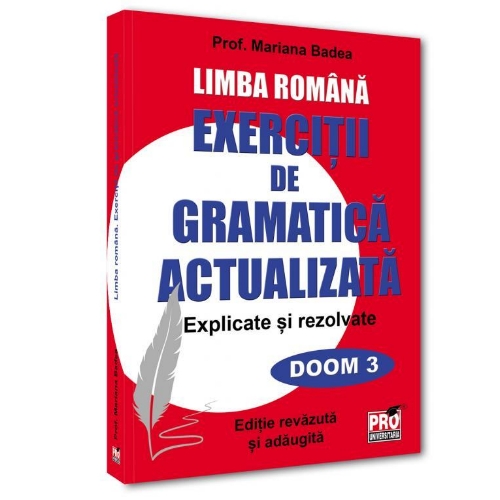 Exercitiile, rezolvate si explicate, aplica teoria cuprinsa in „GRAMATICA ACTUALIZATA”.