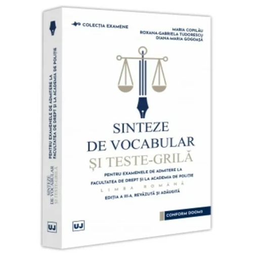 Prezenta lucrare a luat nastere ca urmare a unei frumoase colaborari între studentii Facultatii de Drept si Editura Universul Juridic. Inedita prin cuprinsul sau, sinteze de vocabular si teste-grila atent selectate, asociate cu tematica de admitere la Facultatea de Drept sau la Academia de Politie, aceasta reprezinta o provocare, stimulând si gestionând atât cunostintele, cât si emotiile specifice acestor examene de admitere.